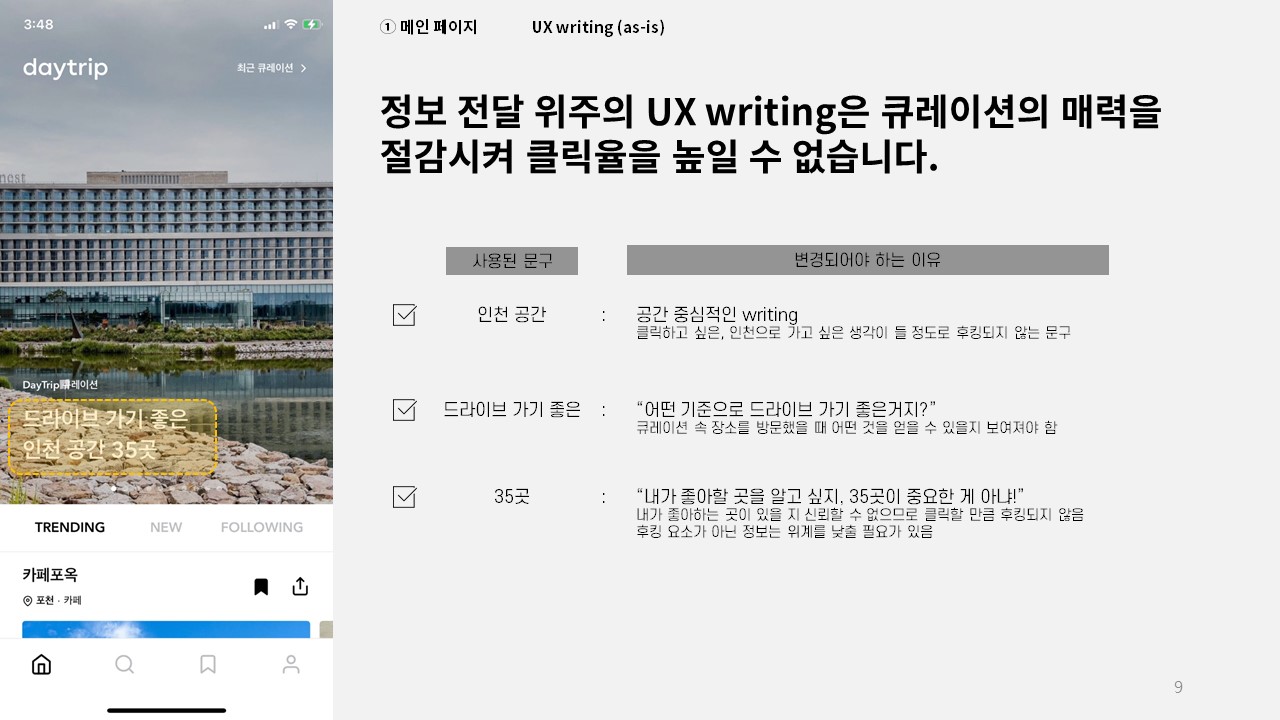 사용자로써 이런 점은 이렇게 개선되면 좋지 않을까? 라는 포인트에서 작성해보았다.