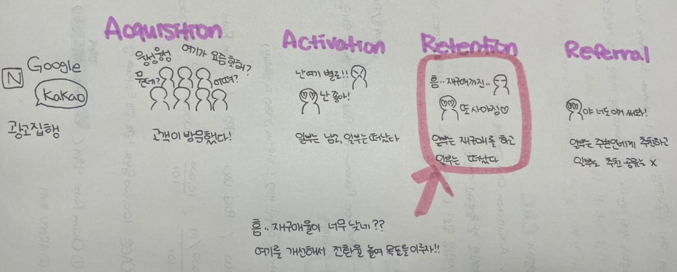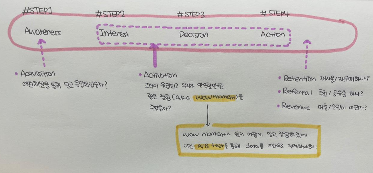 Acquisition - Activation - Retention - Referral - Revenue 로 나누는 것이다.